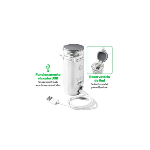 - Funcionamento: o inalador da Multilaser funciona de duas formas. A primeira é através do cabo USB que acompanha o produto. Já a segunda opção é por meio de pilhas;